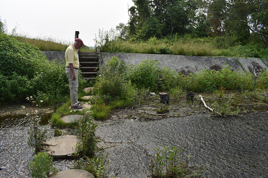 Grieb is worried about the quiet waters framing his walking route through the forest and open areas in Melville Park. As a member of the Naval Station Newport Restoration Advisory Board, he is acutely aware of toxins leaching into the area’s waterways, including eight small ponds, and a shelf in Narragansett Bay fronting his neighborhood. He said the pollution originates from the military base’s properties on the higher ground nearby that stored fuel, a refueling depot operated there from 1900 to the mid-1970s, and other materials.